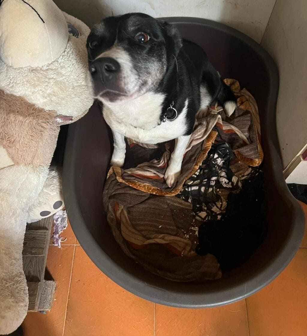 È una cagnolona meravigliosa, taglia media, gioiosa e bisognosa di coccole….