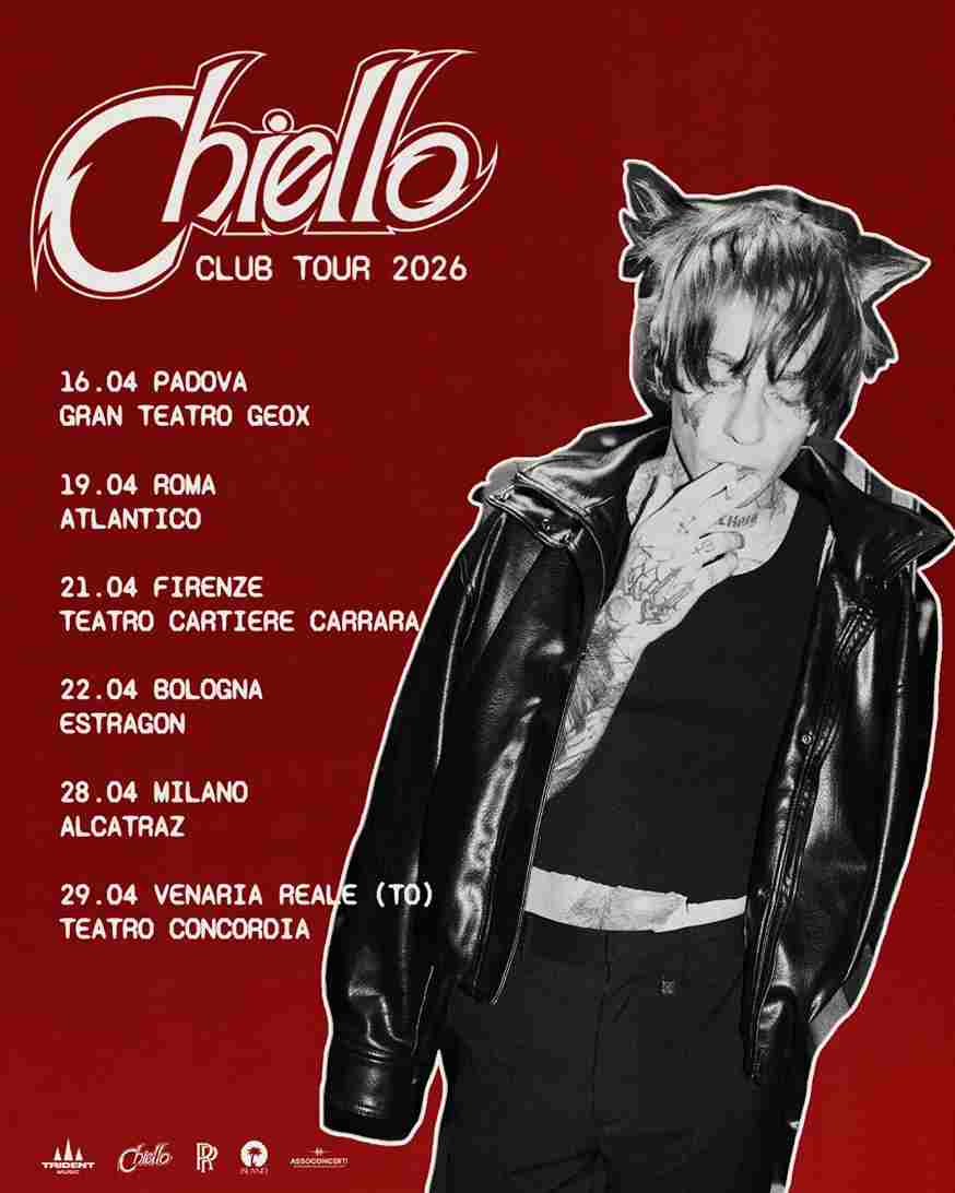 A partire dal 16 aprile 2026, Chiello darà il via a sei date ad alta intensità. Ad accompagnarlo, una band d’eccellenza che promette di trasformare i club in cattedrali sonore, alternando violini, piano e chitarre distorte.