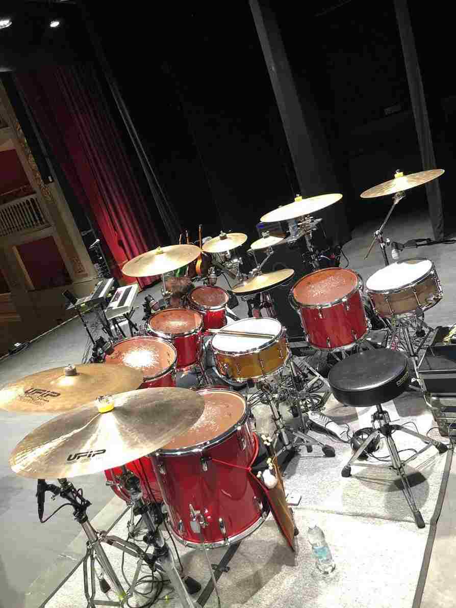 dei miei piatti e tamburi, saluto tecnici e fonici e con un occhio mezzo chiuso