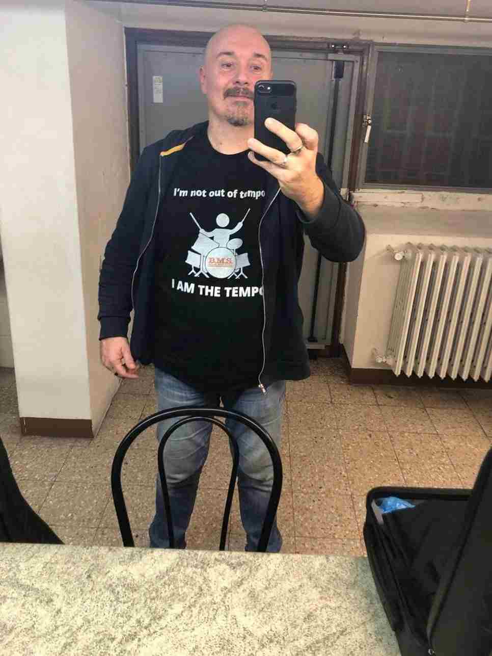 Ore 16:00. Tra una risata e un tamburo sistemiamo la batteria al meglio, con La Sara che documenta il tutto con il mio telefono, fornendomi dei contributi video che da solo non avrei mai potuto realizzare. Il momento del soundcheck è ancora lontano, quindi suggerisco ai giovani amici di farsi un bel giro per Bologna, dove sicuramente si divertiranno di più che ad ascoltare i miei soliti botti d’artificio. Oltretutto, dopo più di due ore passate a