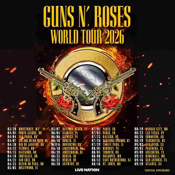 Dopo un trionfale tour mondiale nel 2025 che ha infiammato Europa, Asia, Medio Oriente e America Latina, i Guns N’ Roses annunciano il loro ritorno sui palchi internazionali con un nuovo tour mondiale 2026. La band guidata da Axl Rose e Slash porterà la sua energia in Messico, Brasile, Europa e Nord America, con una tappa storica al Rose Bowl di Los Angeles, la prima dopo oltre 30 anni.