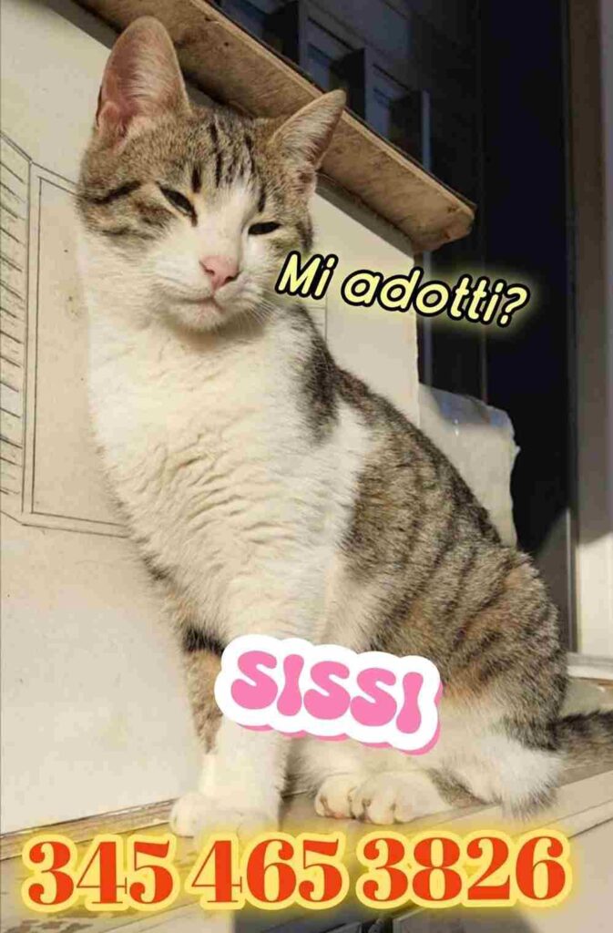 Elegante e snella , con il suo mantello tigrato grigio e bianco e il musetto rosa sembra sempre tranquilla ma in strada nessun gatot può stare davvero al sicuro! Sissi è una gattina curiosa, dolce e simpatica.