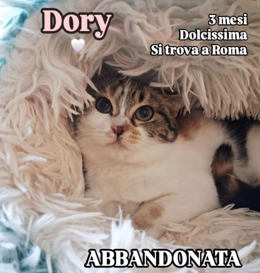 Lei è viva ed è stata messa al sicuro. Ora merita il calore di una vera casa. Dory ha tre mesi èd è una gattina stupenda che va d’accordo con i suoi simili. Si trova a Roma ed è prenotabile nelle città del centro-nord per chi ha la pazienza di aspettare il conferimento del due vaccini.