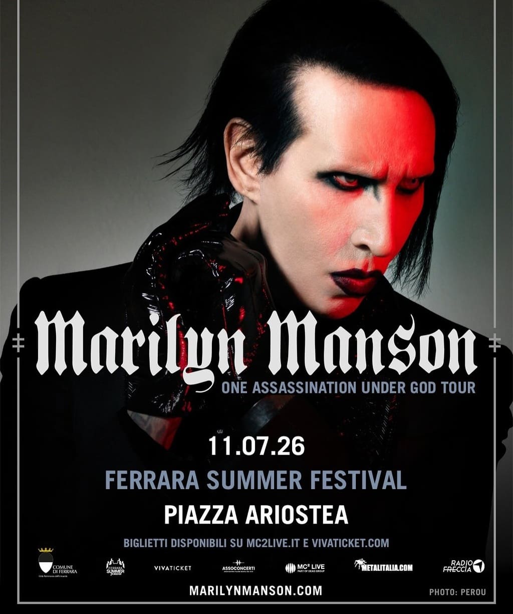 Marilyn Manson annuncia tre date in Italia che si terranno il prossimo luglio. A grande richiesta, visto che i concerti che ha tenuto quest’anno a Bergamo e a Milano sono stati un grande successo. Ecco quindi, con biglietti disponibili già da oggi presso vivaticket.com, tre possibilità per godersi l’ex Reverendo del rock in azione sul palcoscenico. Marilyn sarà nel nostro paese il l’11 luglio 2026 al Ferrara Summer Festiva, il 13 luglio a Bari (Fiera del Levante) e il 14 al Rock in Roma (presso Cavea Auditorium Parco della Musica Ennio Morricone).