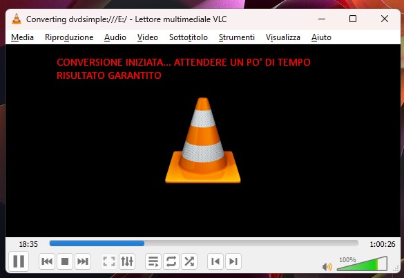 - Infine, clicca su Avvia. A questo punto VLC inizierà a convertire il DVD in MP4.