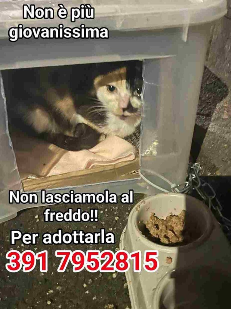 “Sono sola in strada. Mi adotti?”. La gattina abbandonata nel giorno di Santa Lucia.