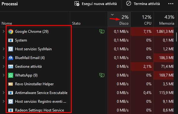 Un altro problema frequente è l’uso del disco fisso. I PC più vecchi con hard disk meccanico soffrono molto le operazioni in background di Windows, come aggiornamenti, indicizzazione dei file e servizi di sistema.